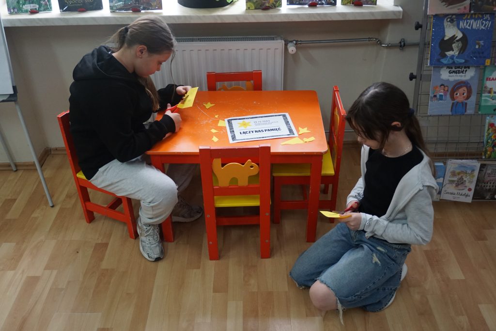 Wykonaliśmy również żółte papierowe żonkile- symbol zbiorowej pamięci i szacunku dla ludzi, którzy wykazali się determinacją w walce o godność i człowieczeństwo. Dziękujemy dzieciom za aktywny udział.